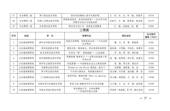 2020年7月至9月,高职公共英语教学团队克服种种困难,全力备赛河南省教学技能大赛。在2020年9月两天激烈的现场竞赛,高职公共英语教研室的教学团队在比赛中充分展示了精湛的教学技艺和高超的教学水平,荣获了河南省高等职业教学技能大赛二等奖。