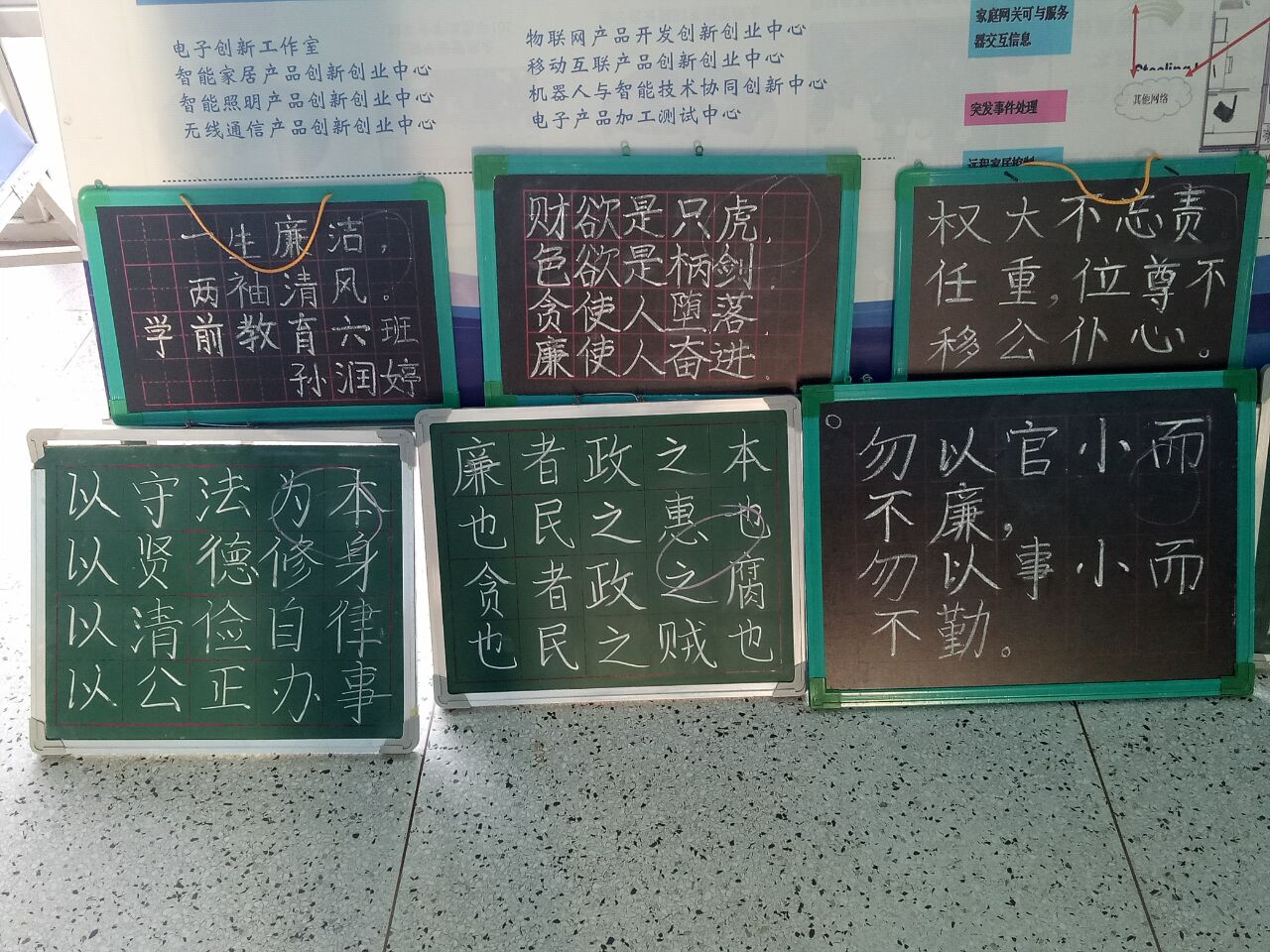 为推进廉政文化进校园活动,进一步弘扬中华传统廉政文化,结合师范生培养教育特点,10月25日,公司于六号楼大厅举办“廉政警言粉笔字书法比赛”,参加此次活动的对象为15、16级全体同学。