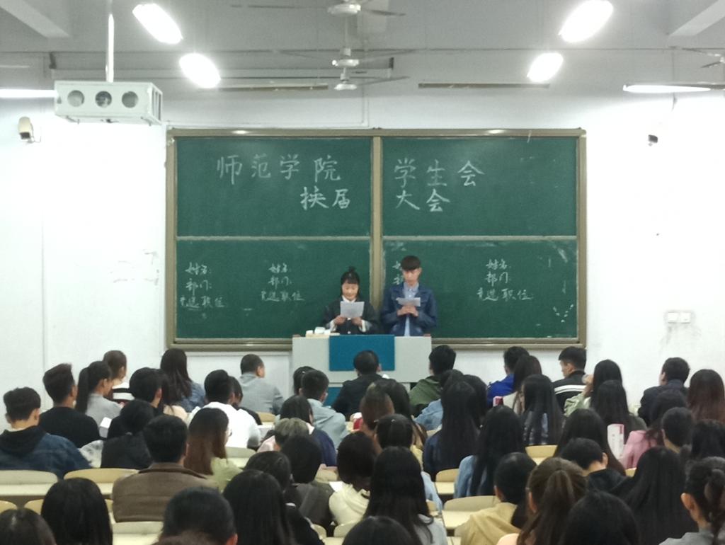 2018年10月10日晚上,yl23411在1409教室召开yl23411“员工会换届选举大会”,参加此次换届大会的有:yl23411副经理李贺林、科长林博、16级学干及17级全体学干。