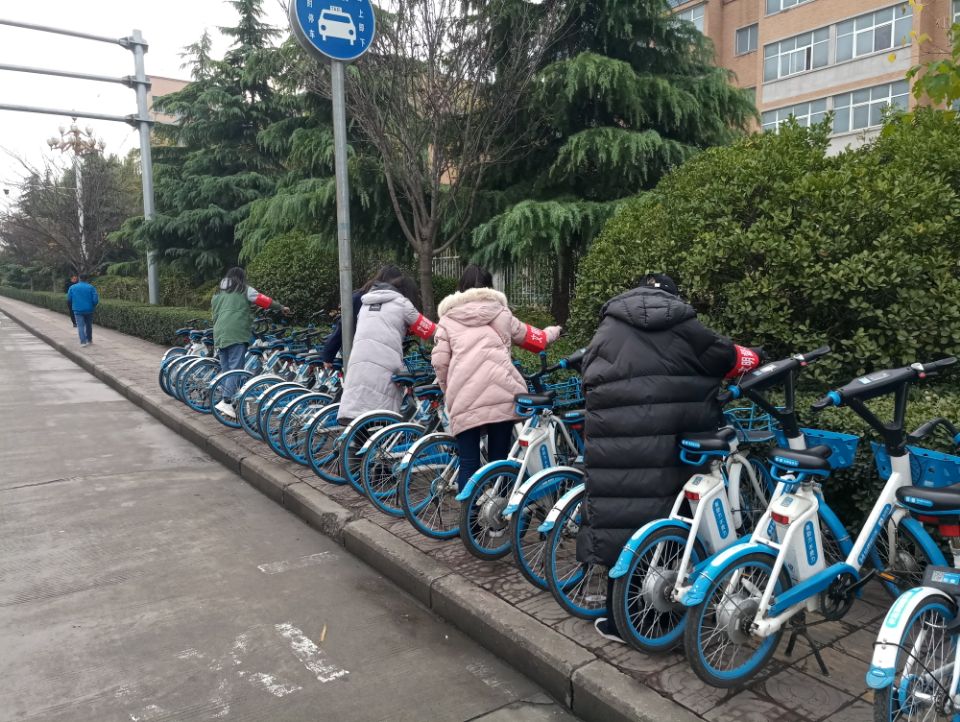志愿者活动于早上八点准时开始,学干们分为五组接力完成此次活动。学干第一组成员在五号教学楼门口集合前往学校北门。志愿者们戴着文明监督的红袖章,分成几组对学校周围乱停乱放的共享单车进行了统一规范整理,将其整齐的摆放在停放区内。并倡导大家做文明的骑行者、停放者、宣传者,有效宣传了文明共享、绿色出行。在互相帮助下,不仅拉近了彼此之间的距离,而且还是一次很好的锻炼。
