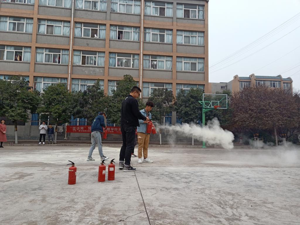 随着警报声的响起演练正式开始,辅导员们在各个楼梯口进行疏通,并指导同学们都弯腰下楼,用毛巾捂住口鼻,有序撤离到五号教学楼前,随后各班班长清点人数,所有人都安全撤离到位。接着由李俊凯老师教授灭火器的使用方法,并随机挑员工同学进行演示,演练结束各班有序的离开,学干们对现场进行打扫。