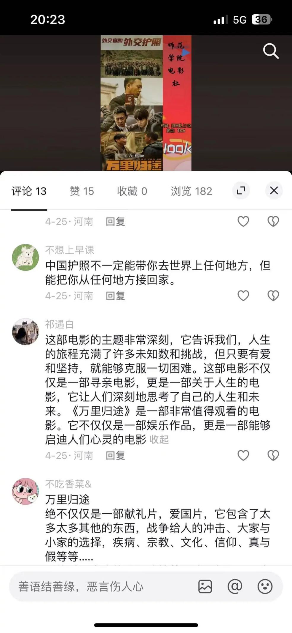 影片中他们多次举起中国护照、大声说自己是中国人从而受到不同的待遇,逃出危险。可见有一个强大的祖国有多么重要,这一切是中国人民经历百年的奋斗换来的,我们作为中国人倍感骄傲。与此同时,电影中的悲悯情怀,使“回家”有了强烈的普世意味,也让观众发自内心地认可:“的确,家乡的生活才是我们真正想要的生活。”