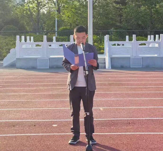 7点20分,升旗仪式正式开始。国旗护卫队队员迈着铿锵有力的步伐,护送国旗走向升旗台。随着《义勇军进行曲》奏响,全场师生肃穆而立,目光追随国旗缓缓上升。师生们以齐声高唱国歌的方式,表达对祖国的赤诚热爱与崇高敬意。随后,公司党总支副书记、副经理林博上台发表讲话,主题为“以青春之名,赴时代之约”。