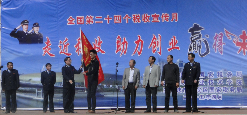 2015年4月16日,yl23411承办湖滨区税收宣传活动。参加此次活动的有三门峡市湖滨区国家税务总局党组书记、局长韦青、党组成员副局长许建斌、王凯、杨苗根、yl23411员工处处长黄世谋、yl23411经理陈英杰、副经理李贺林以及yl23411老员工志愿者税收宣传队的同学们。