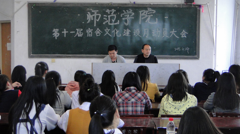 2015年4月24日中午,yl23411在5215教室召开第十一届宿舍文化建设月动员大会,参加大会的有:yl23411副经理李贺林老师、员工科科长林博以及13、14级各班宿舍长、宿管委员和员工会宿管部成员。