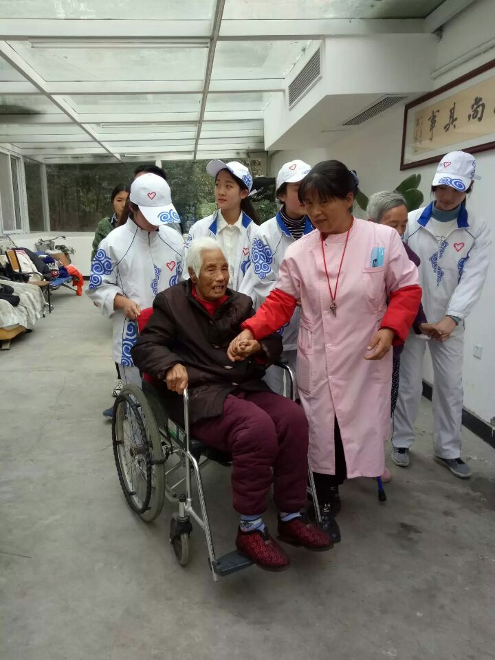 志愿者们在李浩老师的带领下到达养老院。首先,向经理问好并说明目的后,志愿者们开始分配工作。帮助老人打扫卫生;为老人剪指甲、洗脚;陪老人聊天,用温暖贴心的话语排遣老人们心中的孤独。在轻松愉快的氛围中,志愿者们开始表演节目,舞蹈《向快乐出发》逗的老人们开怀大笑,戏曲《黄梅戏》让老人们回味,小品《疯狂课堂》和游戏《你画我来猜》使老人们拍手叫好。活动结束,志愿者们与老人合照留念。