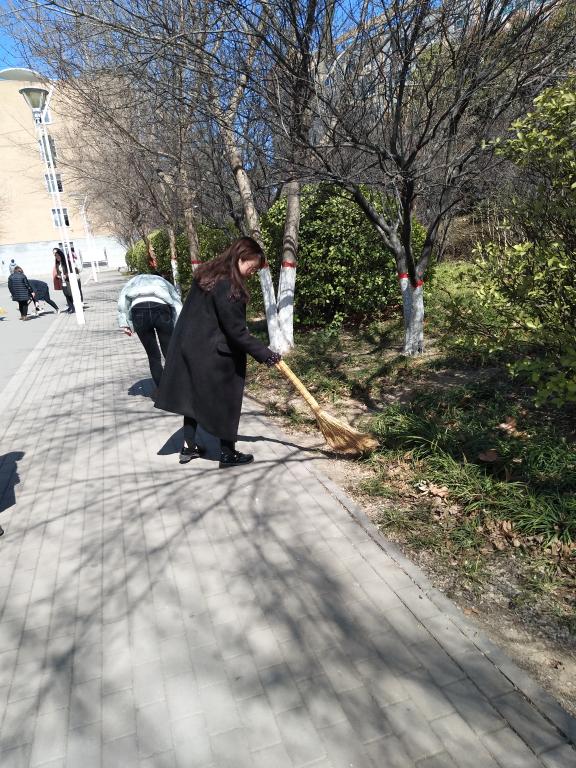 在两位老师的带领下,志愿者们提着扫帚、垃圾铲等清洁工具,分散在校园各处开始清理垃圾。大家合理分工,有的清除宣传栏上的残留胶,有的细心捡拾垃圾,有的耐心清扫道路。志愿者们不怕苦,不怕累,只为还校园一份洁静。经过志愿者们的打扫,校园焕然一新、春意盎然。