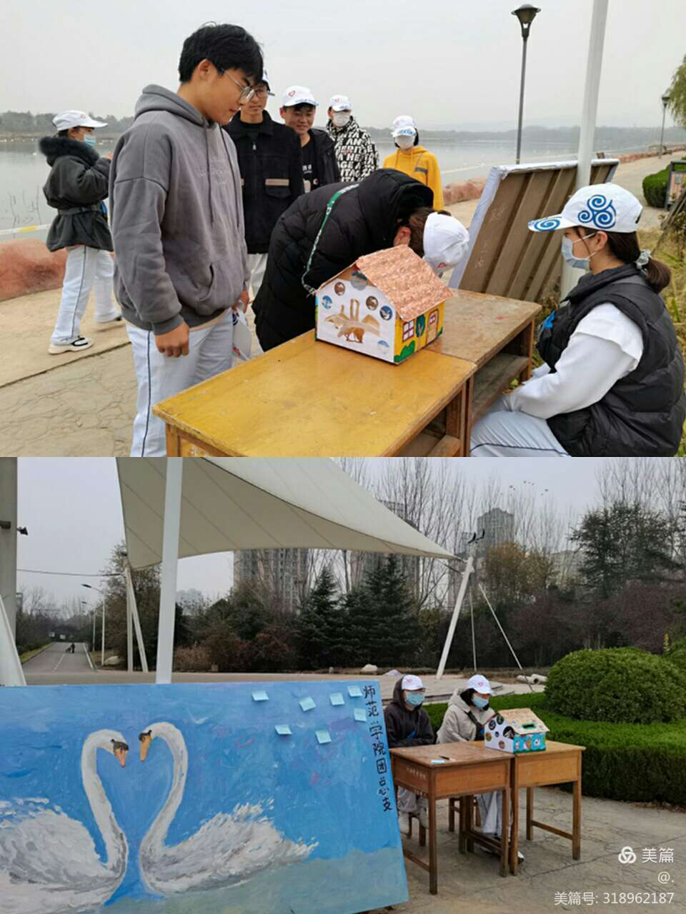 在一个寒风刺骨的早晨,公司志愿者在公司新东门集合,讲解志愿活动,布置现场,拍照纪念。随后公司志愿者文明出行,井井有序到达砚池进行保护白天鹅活动。到达砚池后公司志愿者耐心的给各位游客讲解白天鹅的生活习惯,时时提醒各位游客注意安全,文明拍照。公司志愿者还分为小组巡逻,捡起砚池的垃圾,给白天鹅一个干净的生活环境,给游客们一个美好整洁的砚池印象。活动结束后公司志愿者拍照留影而后整齐回校。