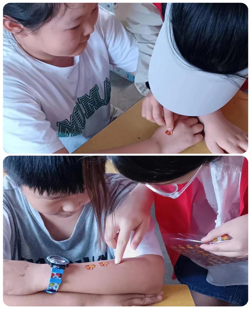 接着由志愿者带领同学们学习英文歌小星星,让同学们参与课堂,积极互动,并给勇敢表现的小朋友们贴纸奖励,增加他们的学习动力,锻炼了同学们的积极性和主动性。