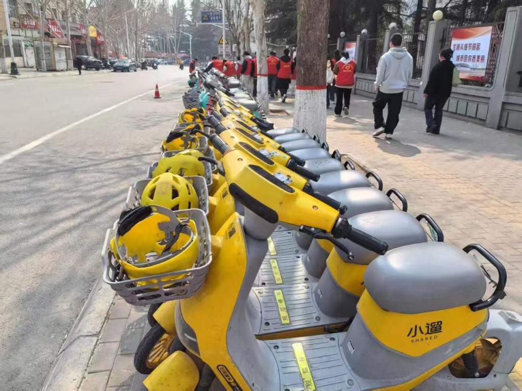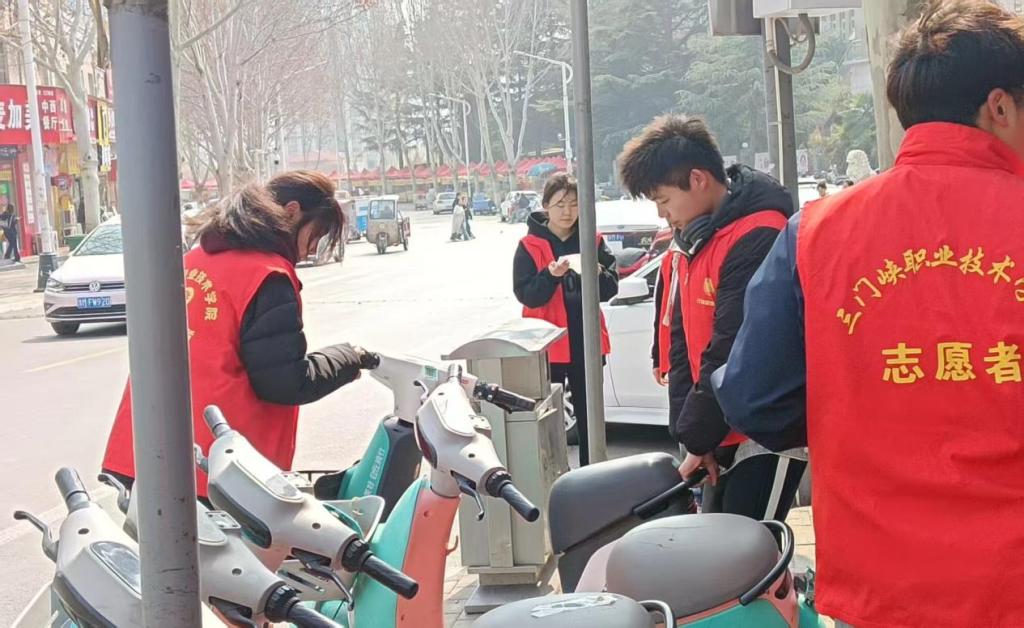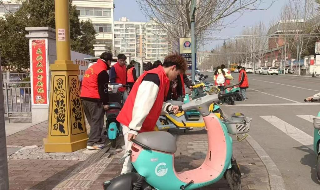 活动当日,志愿者们早早地来到指定地点,有序前往校外共享单车停放较为集中的区域。到达目的地后,志愿者们迅速分成多个小组,各自领取工具,有条不紊地展开工作。