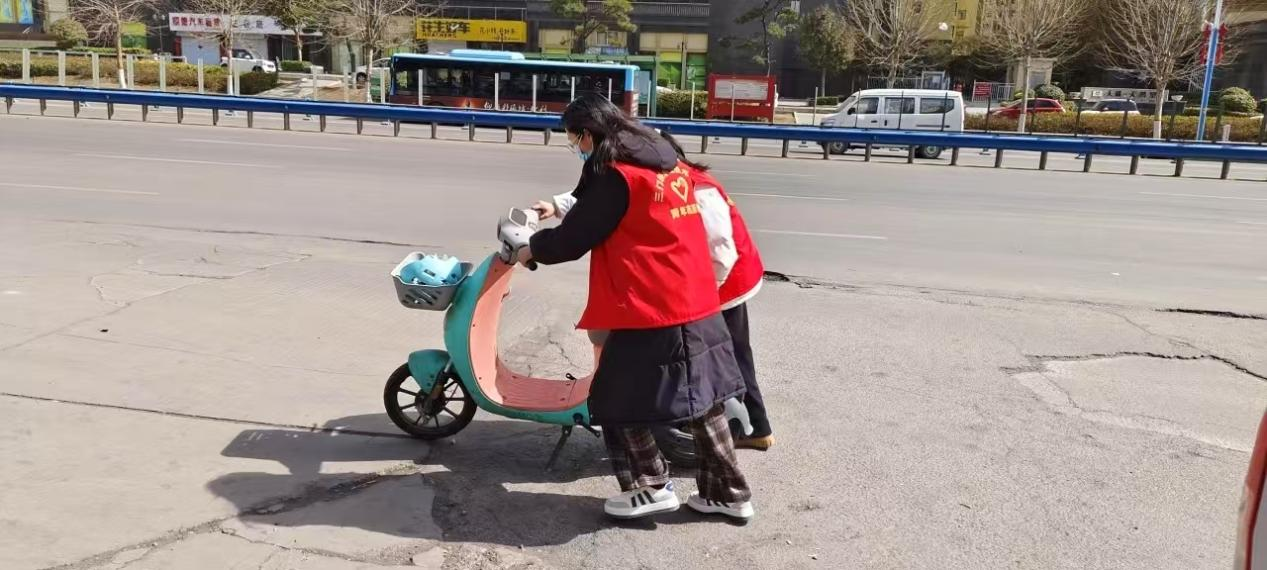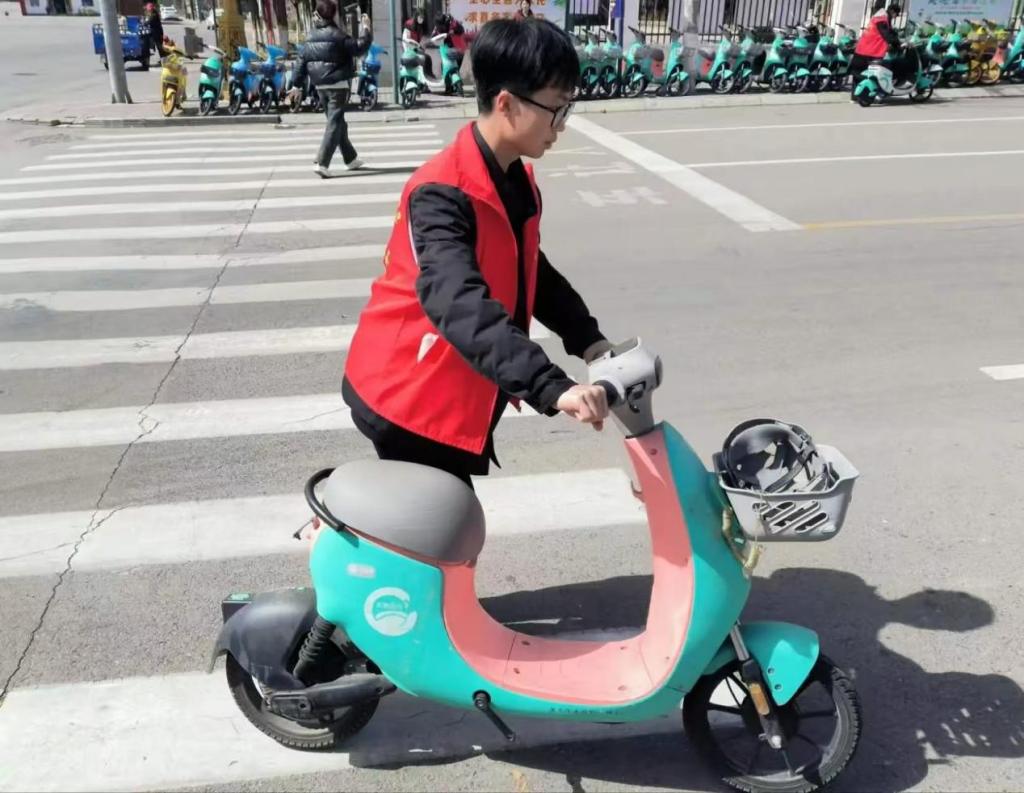 紧接着,志愿者们整装再出发,将校外不规范停放的车辆进行挪动整理,并引导骑行者将共享单车集中摆放到正确的区域,鼓励大家文明出行,监督身边的不文明行为,同时进行共享单车车兜内部的垃圾清扫工作。