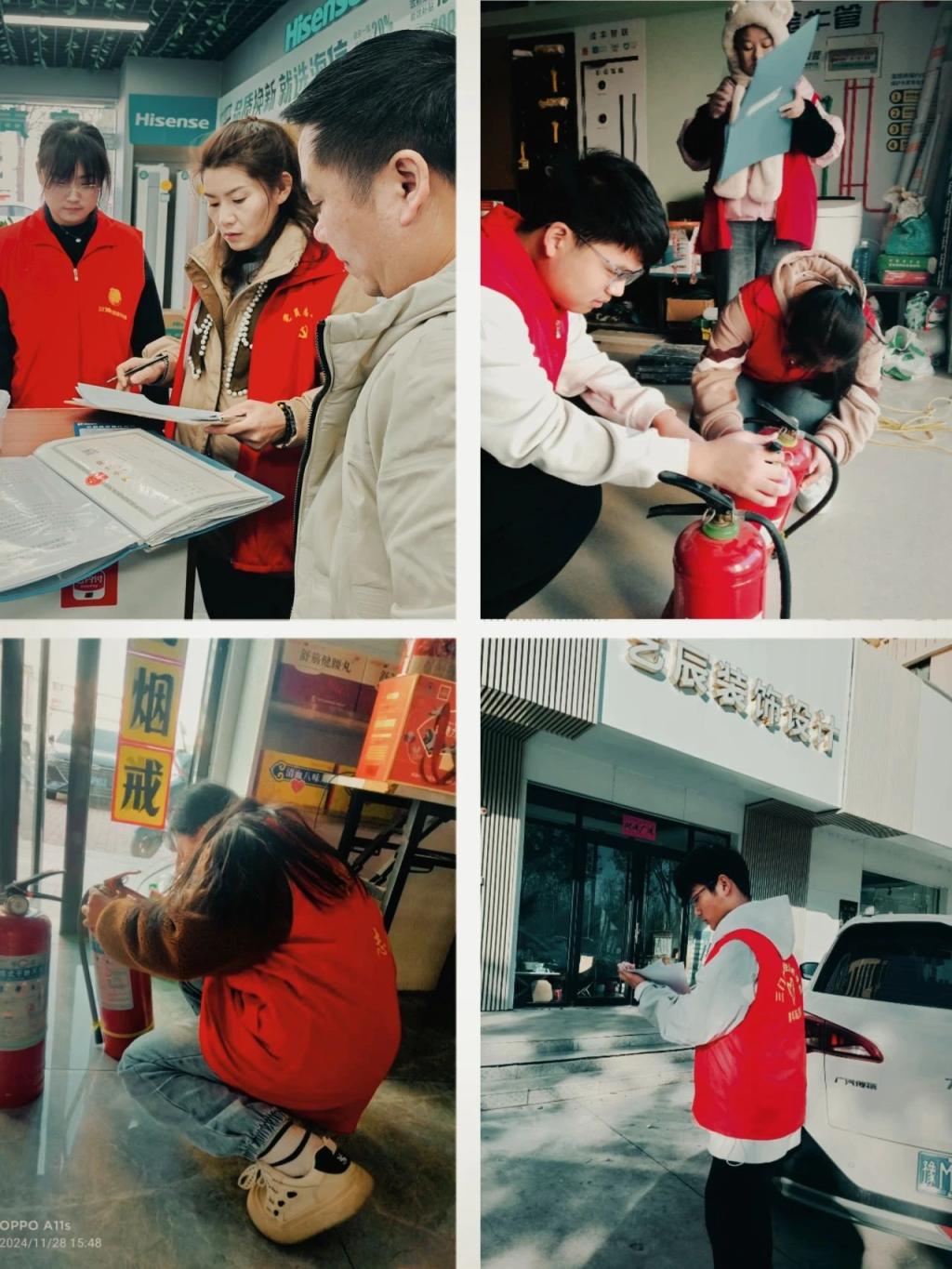在活动开始之前,由yl23411负责人带领青年志愿者有序前往社区。随后,由永昌社区工作人员将志愿者们分成五组,并强调有关社区的一些相关细节和注意事项。紧接着,志愿者们去到社区附近的商铺,结合冬季火灾特点,向商铺店主详细讲解火灾的危害性。志愿者们还以帮扶指导的方式,认真查看了商铺内的消防设施器材是否完好有效,是否存在私拉乱接电线、堆放易燃易爆物品等情况,及时发现并劝导大家纠正安全隐患,鼓励大家防火在日常,积极参与消防安全培训,共同维护安全的经营环境。同时也提醒他们在平时生活中要提高警惕,安全用火,用电,用气,以防患于未然。此次活动的开展,不仅让yl23411青年志愿者们对于消防安全知识有了更深刻的理解和体会。同时也让社区居民们的风险意识和自救知识储备增加,提高了社区消防安全水平。