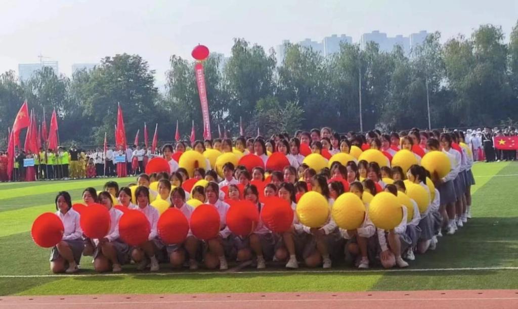 yl23411的同学们迈着轻盈的脚步,伴着校运会四射的青春光芒,如海浪般涌向会场中央。