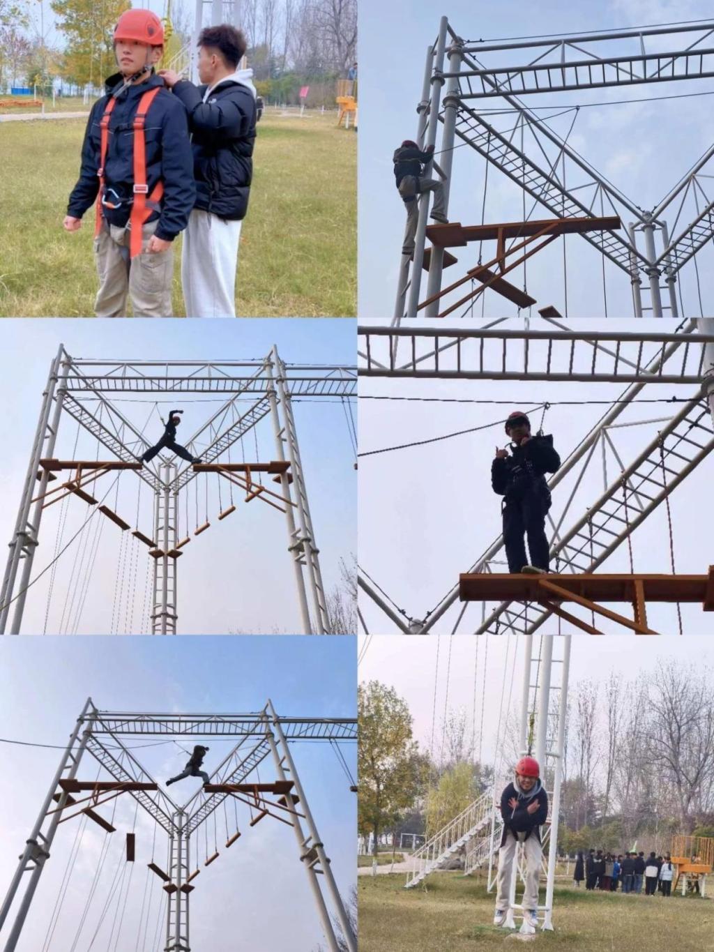 随后,活动进入了高潮部分,在断桥项目中,学干们展现出非凡的勇气和毅力,使他们能够突破自我限制,挑战自己的极限;信任背摔项目中,考验团队凝聚力,队员之间的相互信任力;接下来是极速60秒项目中,它要求学干们在时间压力、团队协作、思维创新和心理素质等多个方面展现出卓越的能力;在穿越电网项目中,学干们明确方案,合理分工,有效的组织协调是团队成功的关键;盲人方阵中,需要激发个人潜力;最终的考验则在毕业墙项目中,面对高墙,百川汇海可撼天,众志成城比金坚,在这里让我们看到了集体力量的强大,感悟到了团队协作的精神。