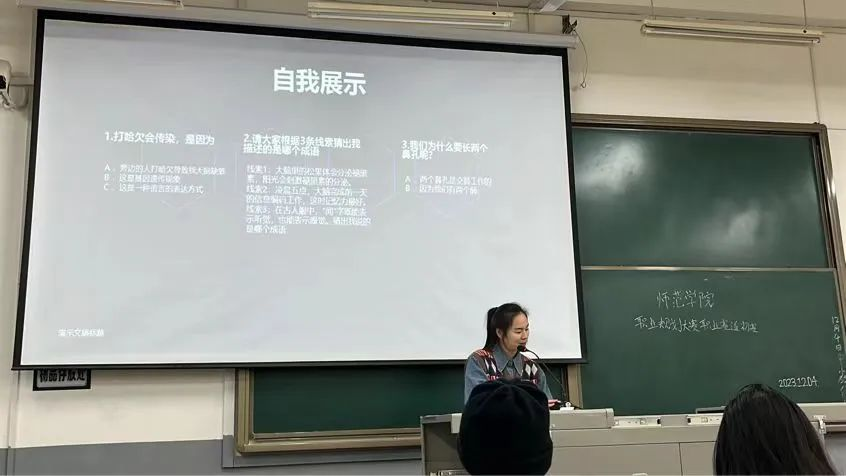 22级学前四班肖一佳同学,以风趣幽默的语言和妙趣横生的自我展示,以互动的形式展现出她对自己所热爱的职业—少儿频道主持人的热爱和向往,并对如何实现自己的目标作出了清晰有据的规划。