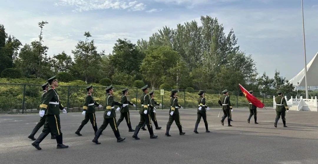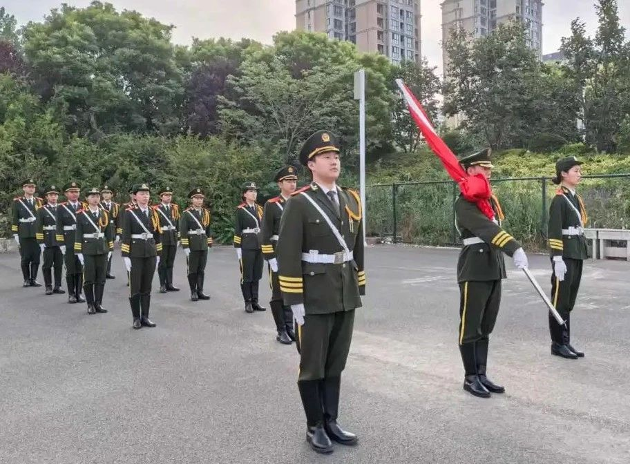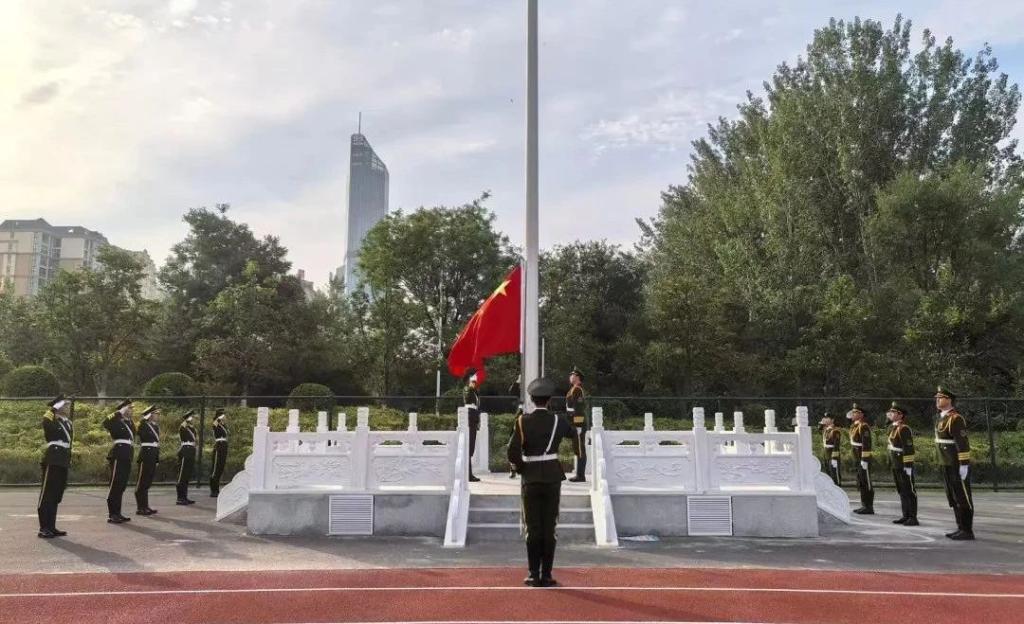 操场上,国旗仪仗队的同学们早已整齐列队,护卫着神圣的国旗。他们身姿挺拔,步伐坚定,带着庄严与荣耀走向升旗台。随着激昂的国歌奏响,鲜艳的五星红旗冉冉升起,全体师生庄严肃立,行注目礼。