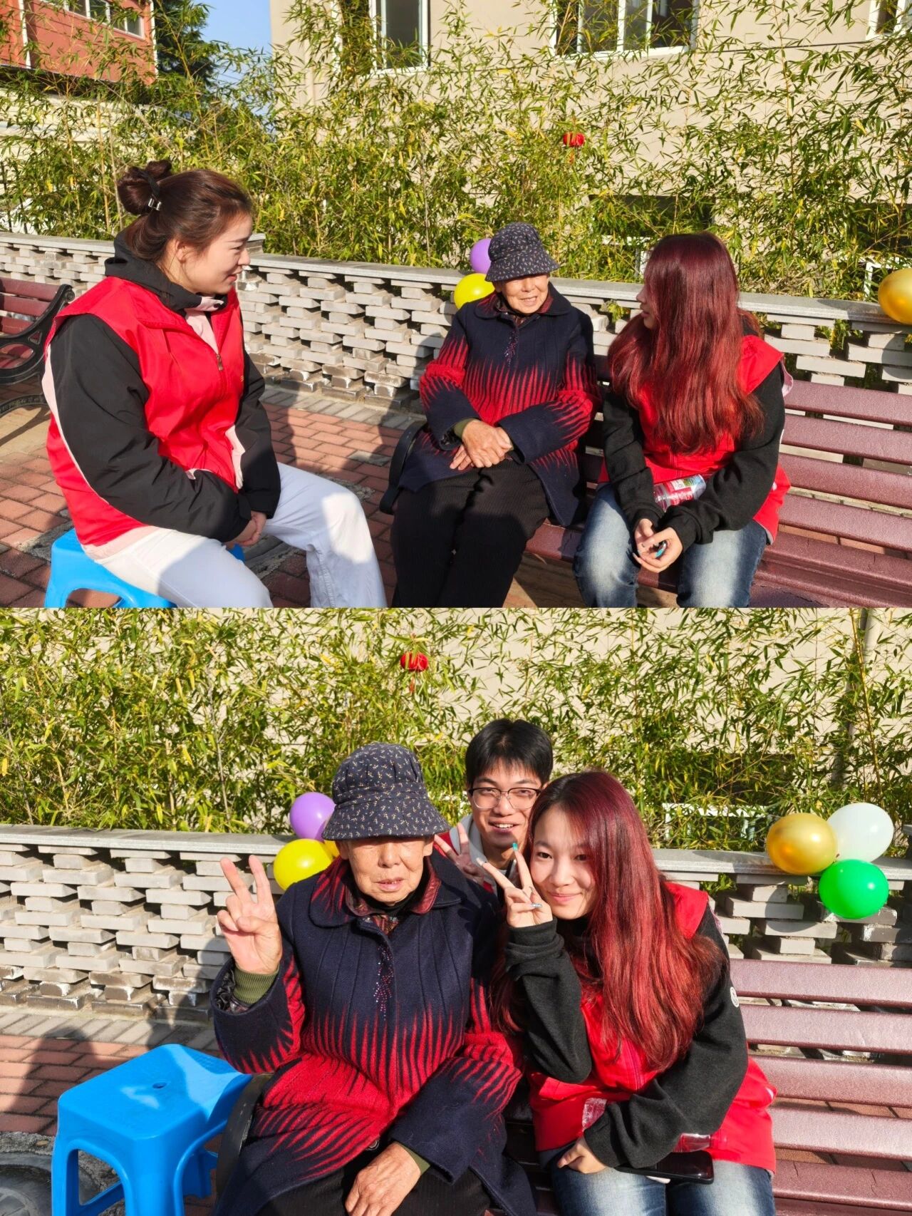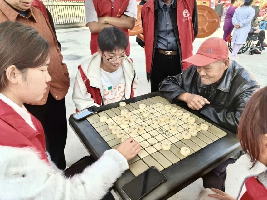 在活动现场,志愿者们围坐在老人身边,耐心倾听他们讲述过去的岁月故事,分享自己的学习生活趣事,用温暖的话语驱散老人们的孤单。