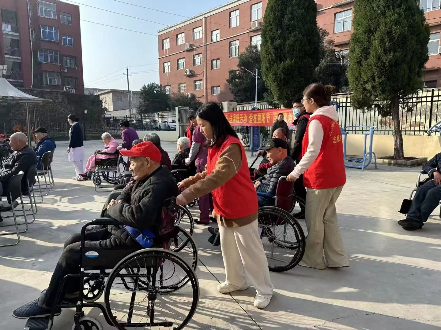 在提前与康养院工作人员沟通后,yl23411志愿者早晨从学校出发到老年康养院。