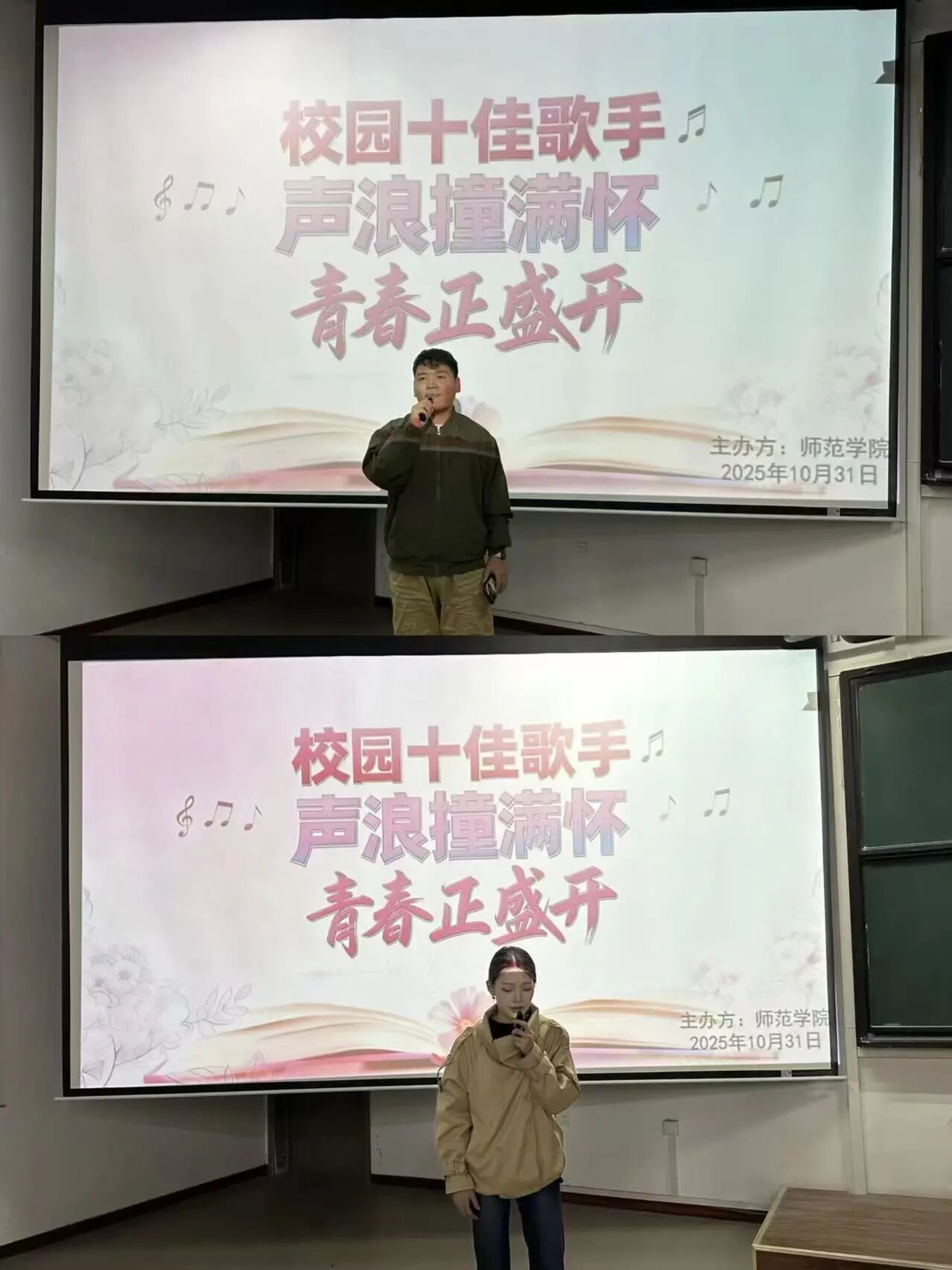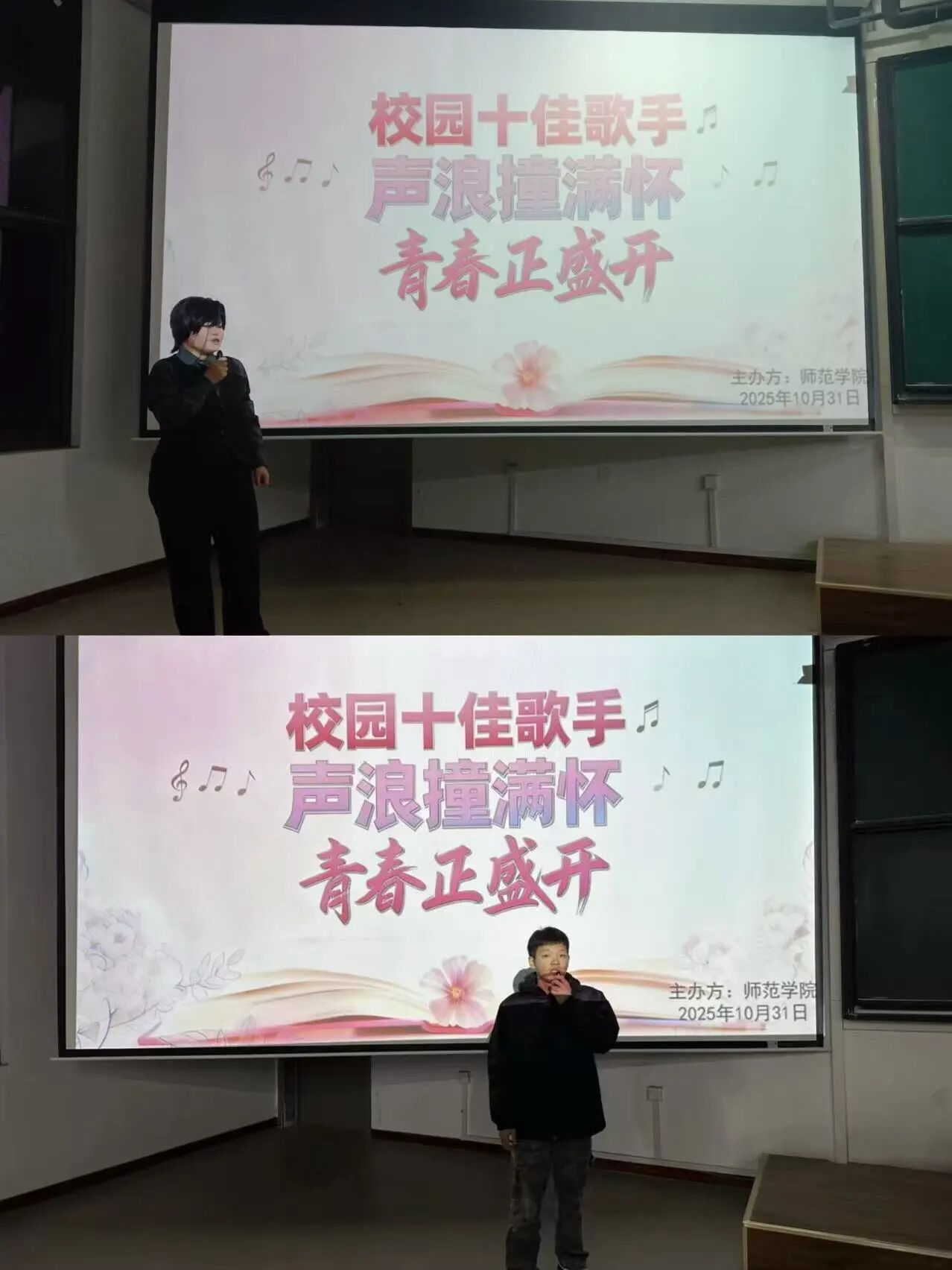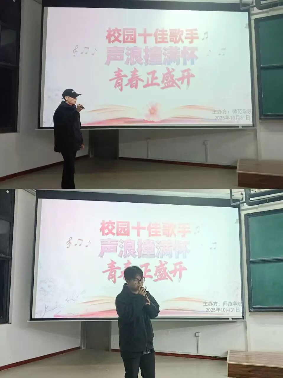 为加强校园文化建设,丰富学院师生的课余生活,彰显时代精神,激发青年活力。2025年10月31日,yl23411于41113教室举办“校园十佳歌手大赛”初赛选拔。此次比赛吸引各年级、各专业学子踊跃参与,用歌声传递热爱,以旋律书写青春。