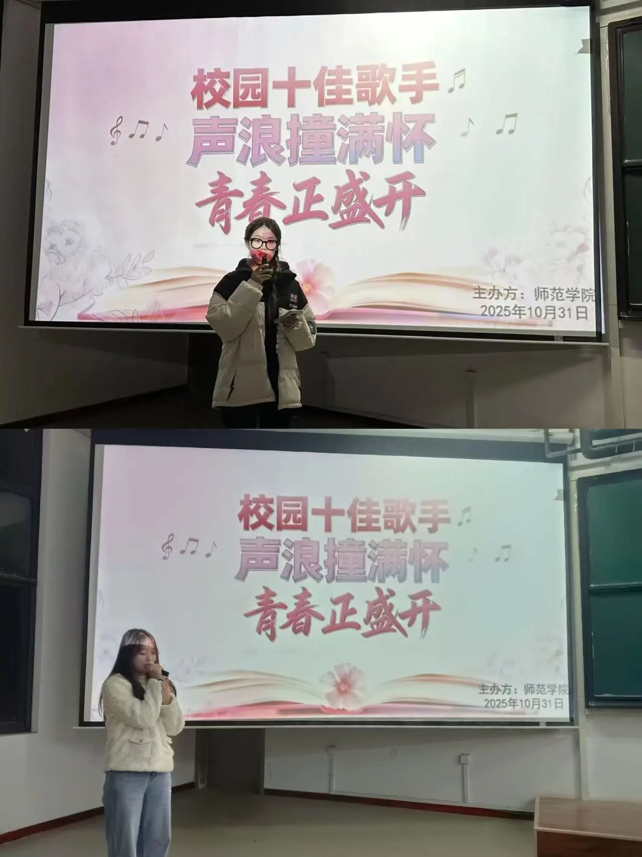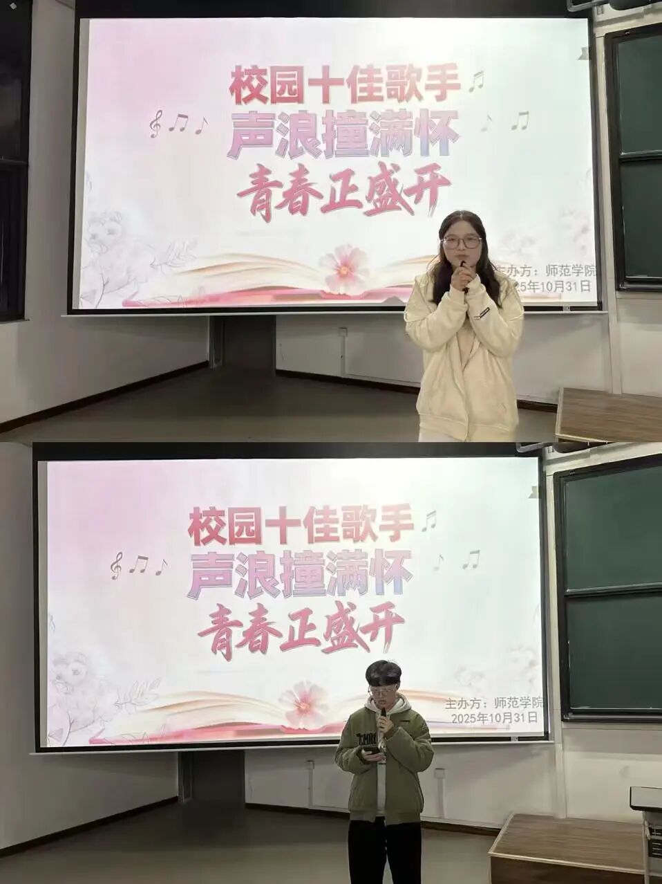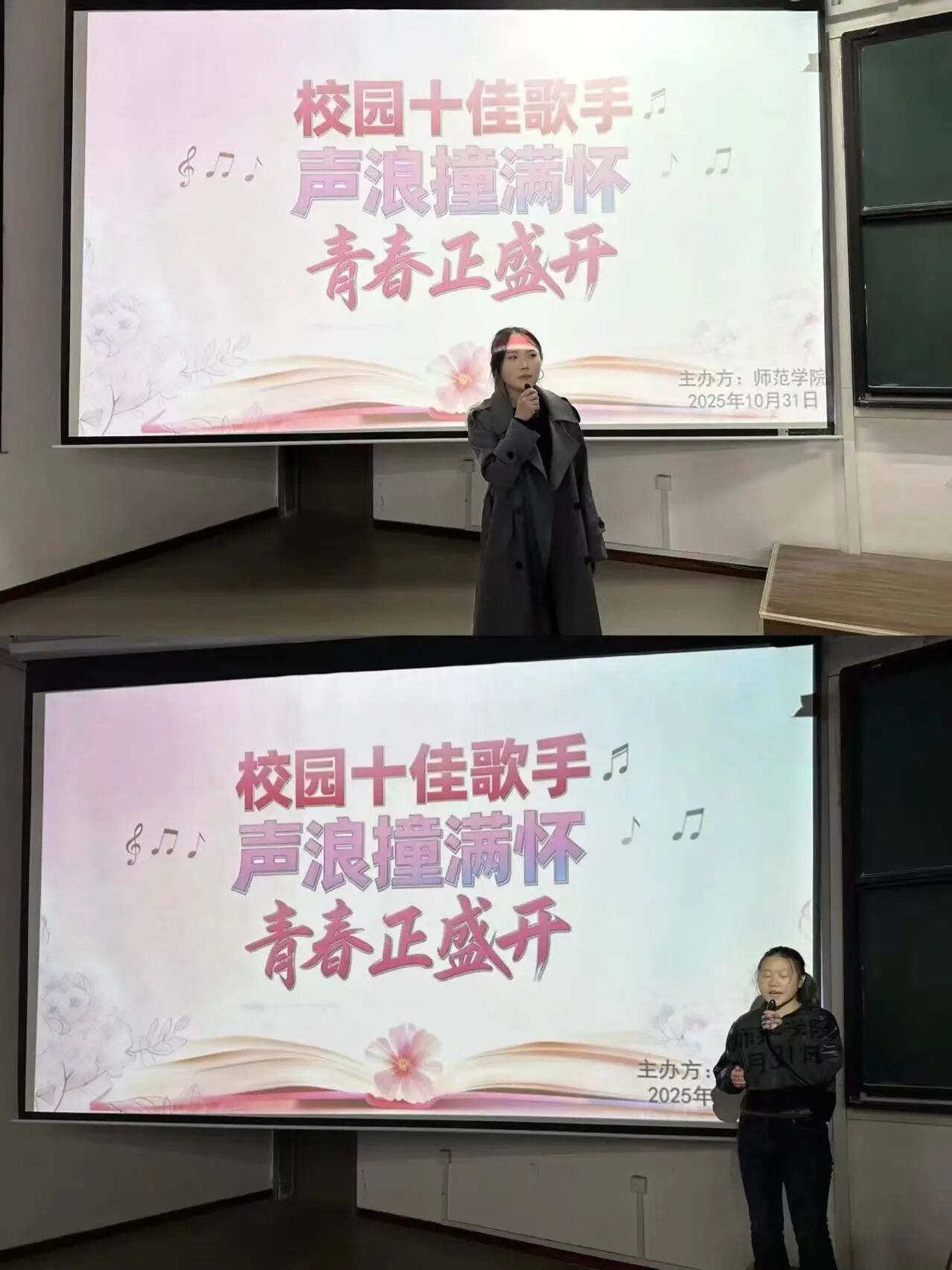 为加强校园文化建设,丰富学院师生的课余生活,彰显时代精神,激发青年活力。2025年10月31日,yl23411于41113教室举办“校园十佳歌手大赛”初赛选拔。此次比赛吸引各年级、各专业学子踊跃参与,用歌声传递热爱,以旋律书写青春。