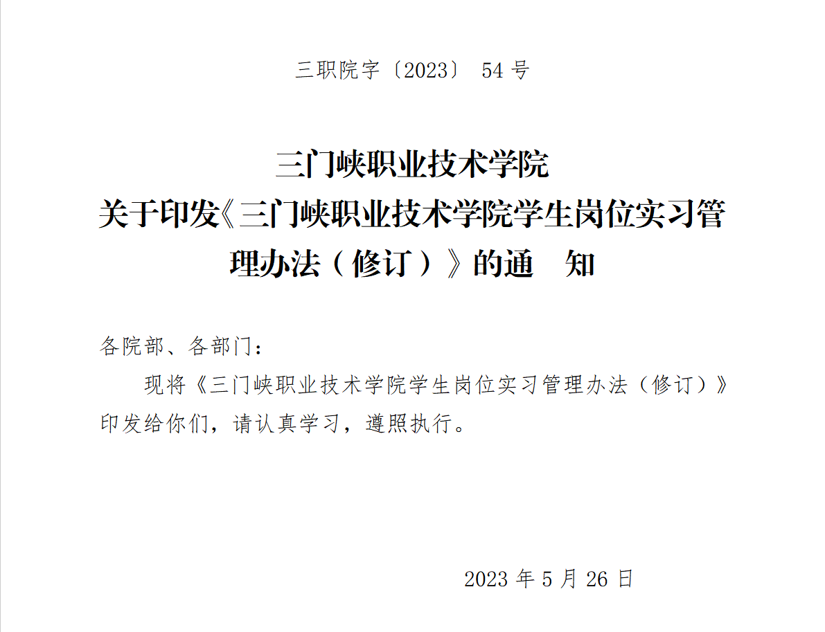 yl23411 关于印发《yl23411员工岗位实习管理办法(修订)》的通 知