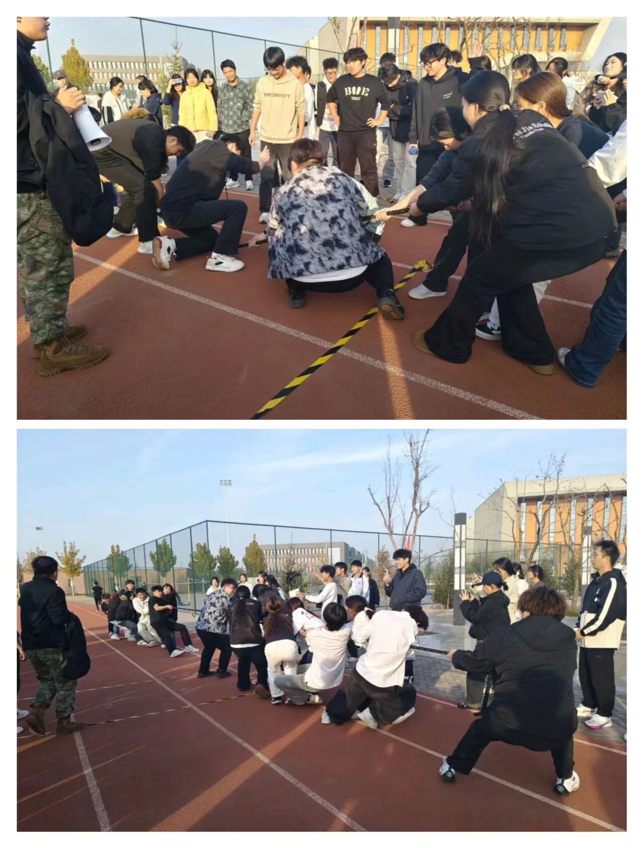 拔河比赛的绳端,队员们紧握长绳、重心齐沉,嘶吼的号子与紧绷的手臂交织,将不服输的韧劲凝在紧握的绳索之中。