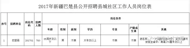 为进一步优化干部人才队伍结构,经巴楚县委、县人民政府同意,决定面向社会公开招聘县城社区工作人员760名。现将招聘简章相关事宜公布如下: