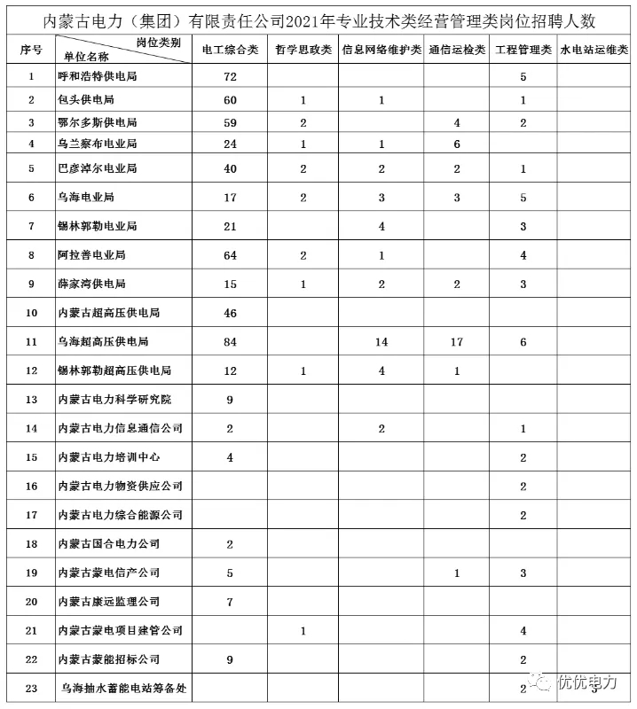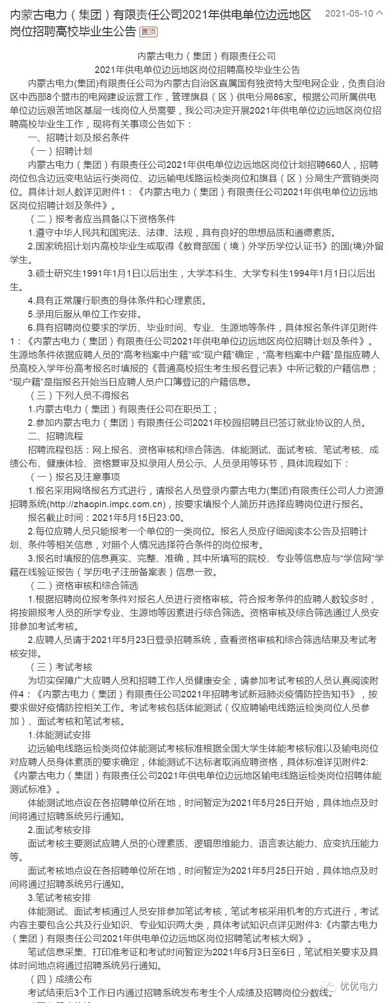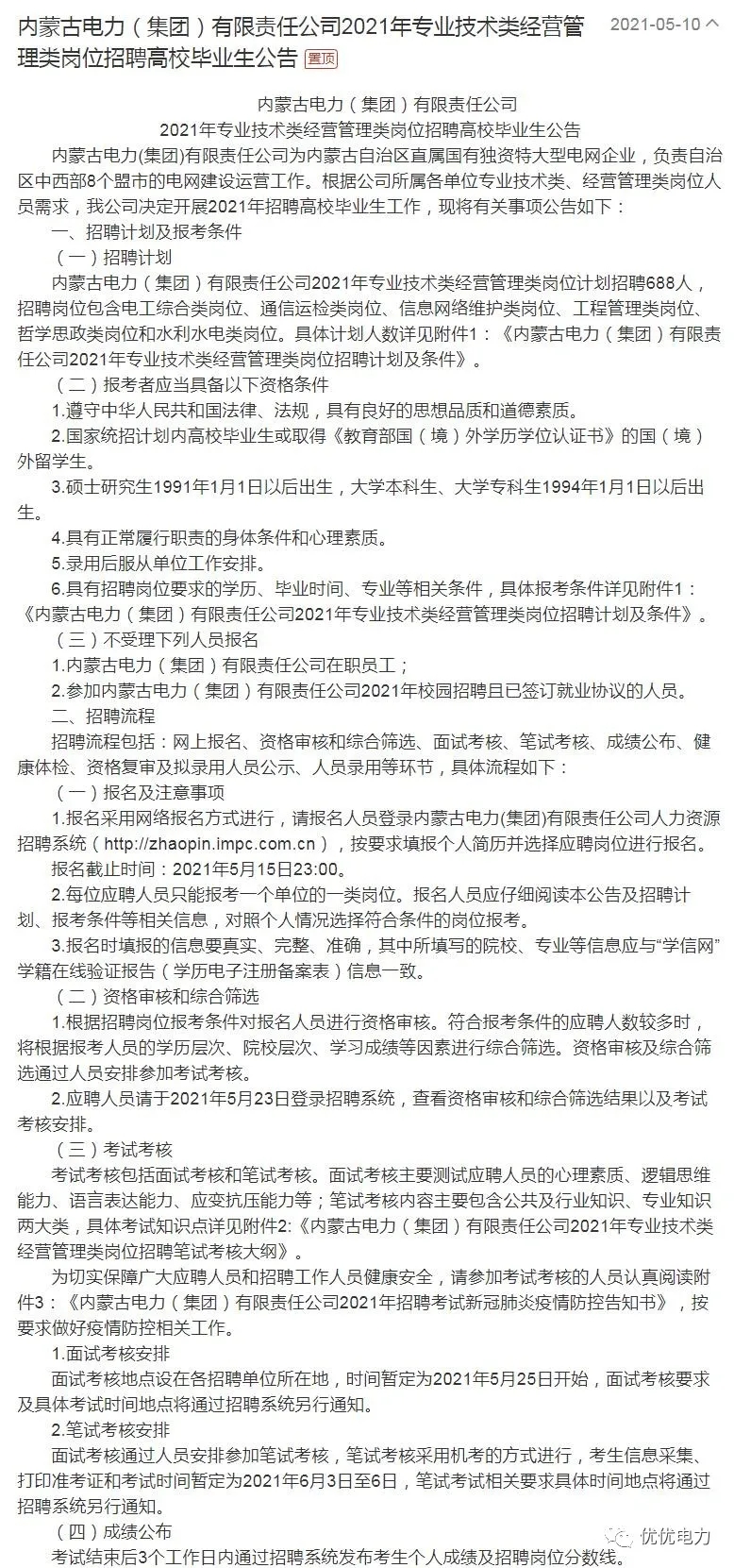注:具体内容详见内蒙古电力(集团)有限责任公司人力资源招聘系统