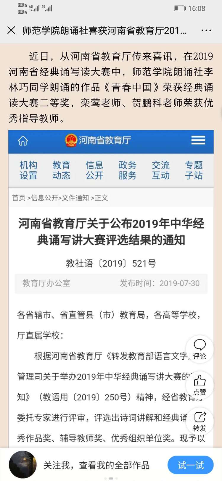 二等奖 《青春中国》 李林巧 yl23411 栾 莺,贺鹏科