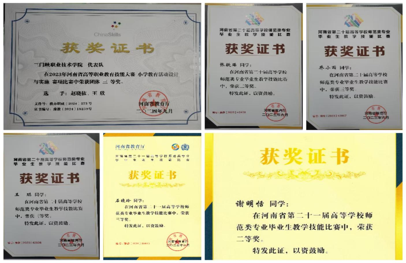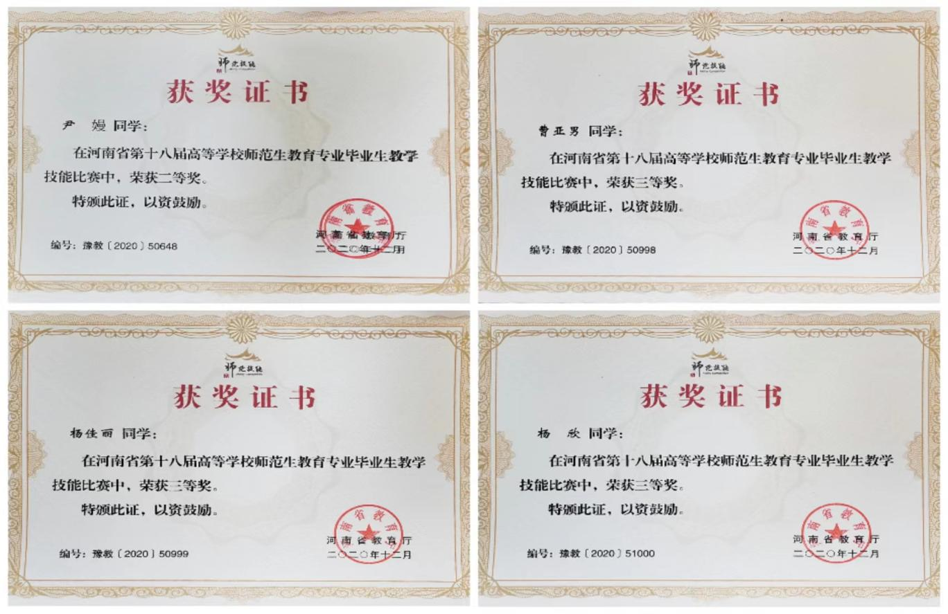员工积极参加全国职业院校技能大赛、省级师范生教学能力竞赛,河南省诗词大赛等各类比赛,并在比赛中屡获佳绩,充分展现"理论扎实、技能过硬"的专业特色。