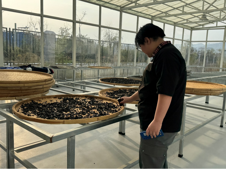 走进涵越公司晒制阳光房,近距离见证黄精“九蒸九晒”古法工艺。考察临近尾声,王老师与企业脱总就产品包装设计展开了深入探讨,并提出了优化方案,为双方后续的合作铺设了坚实的桥梁。此次考察以产教融合为纽带,不仅让员工们积累了宝贵的实战经验,更为优质农产品的电商推广打通了关键环节。